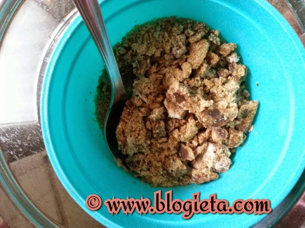 - Masukkan kacang yang telah dikisar tadi dan gaul rata.