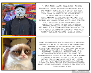 - Beta antara yang disihir lambat tahu tapi beta melawan mereka. Beta tahu amalan syirik dan khurafat pada masa dahulu. Melawan, jadilah mangsa jenayah siber akidah, kesihatan, keselamatan, niqab dan keluarga keturunan beta jadi mangsa fitnah mereka. Tak ada istilah lah ajaran sesat tak mengancam nyawa.