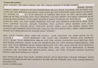 | PSIKIK SCAMMER PENUNGGANG AGAMA PEMBERONTAK KERAJAAN DAN NEGARA. Isi kandungan laporan polis di atas. |